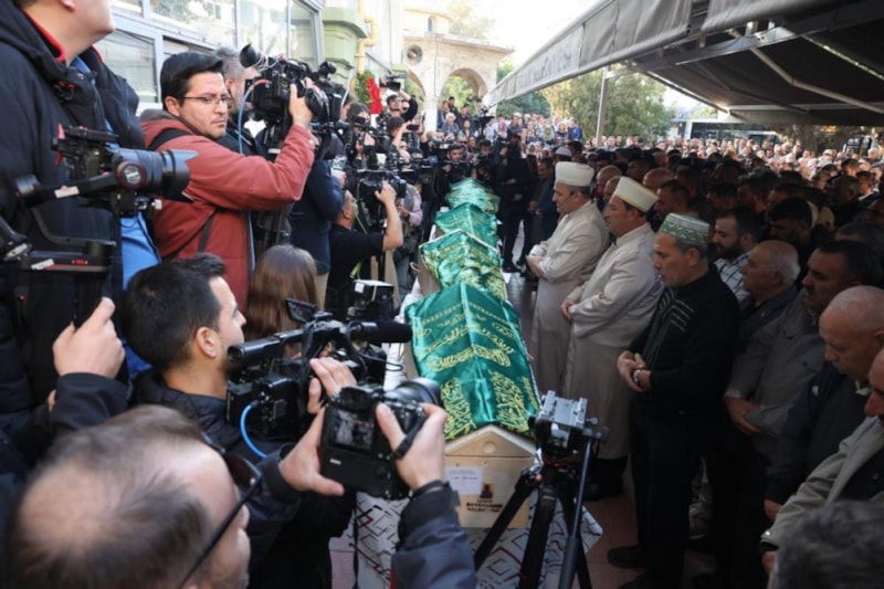 5 kardeş için Selçuk ilçesi Tahsinağa Camii’nde ikindi namazını müteakip cenaze töreni düzenlendi. Cenazede; Aras Bulut (1), Masal Işık (2), Aslan Miraç (3), Funda Peri Akcan (4) ve Fadime Nefes (5) adlı 5 kardeşin tabutları yan yana konuldu.