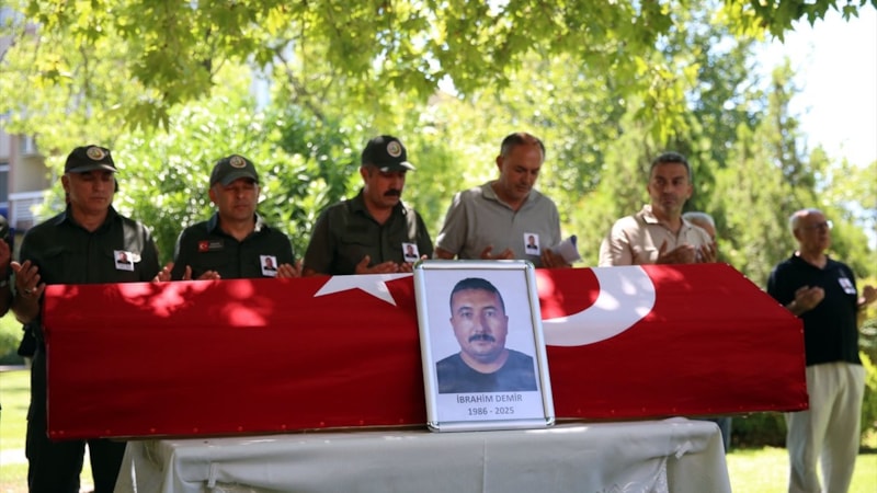 Ödemiş'teki orman yangınına müdahale ederken hayatını kaybeden 39 yaşındaki orman işçisi İbrahim Demir için İzmir Orman Bölge Müdürlüğü'nde cenaze töreni düzenlendi. Naaşı yakınları tarafından gözyaşları içerisinde taşındı.