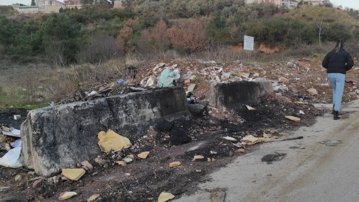 Kuruçeşme TEM otoyolu kenarından gelen bir başka fotoğrafta ise yol kenarında molozların yanı sıra, atıkların da olduğu görülüyor.
