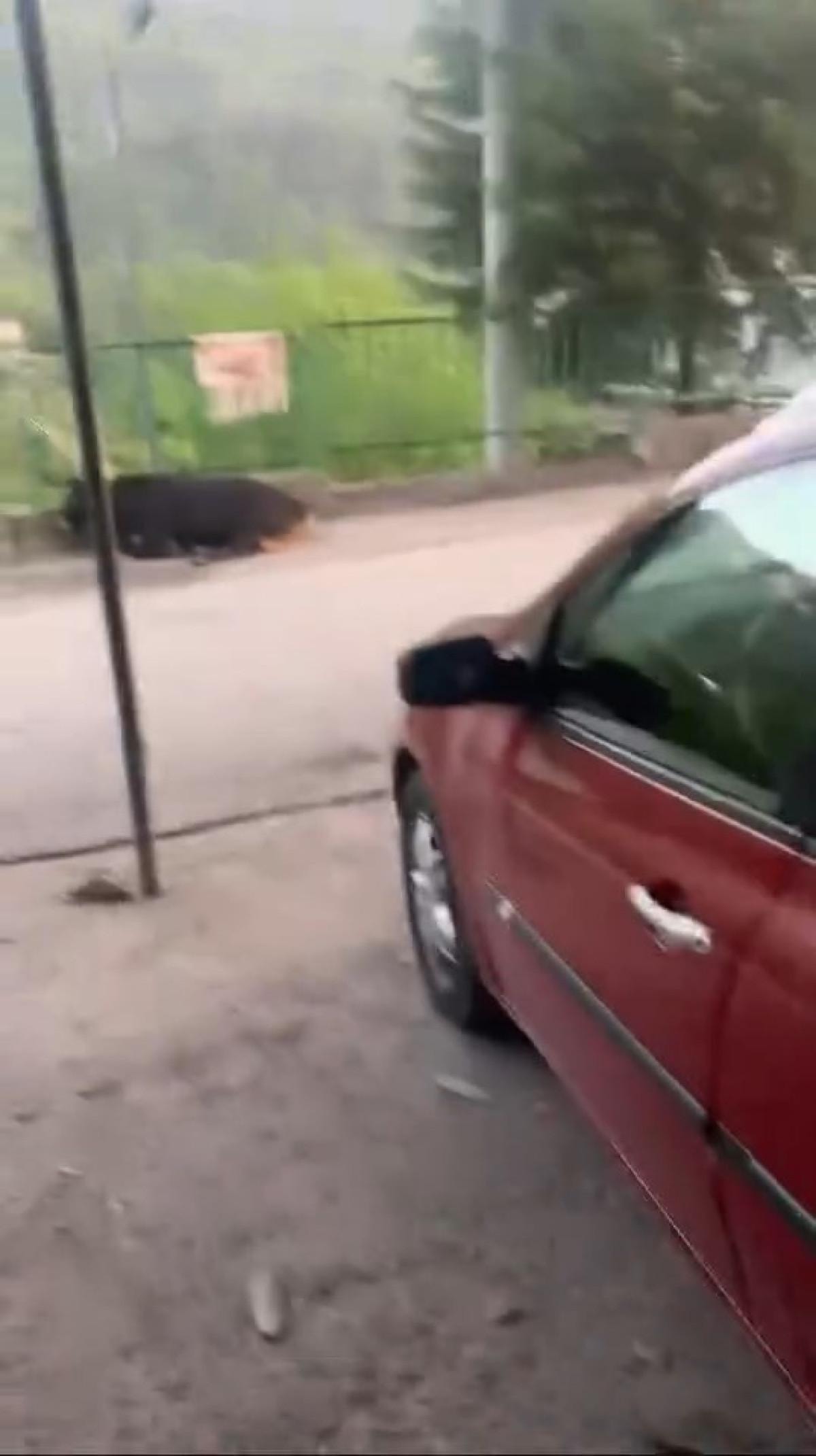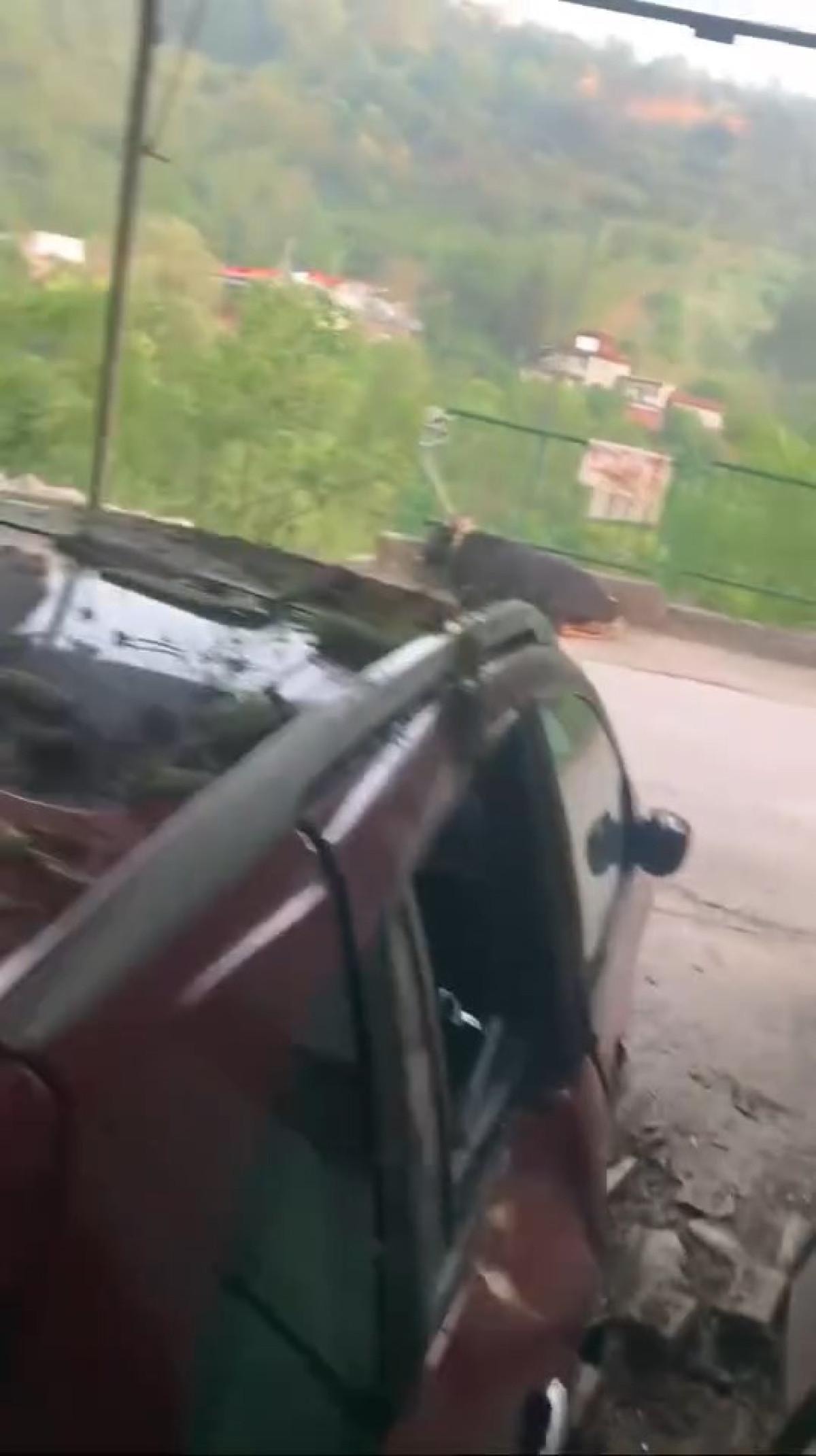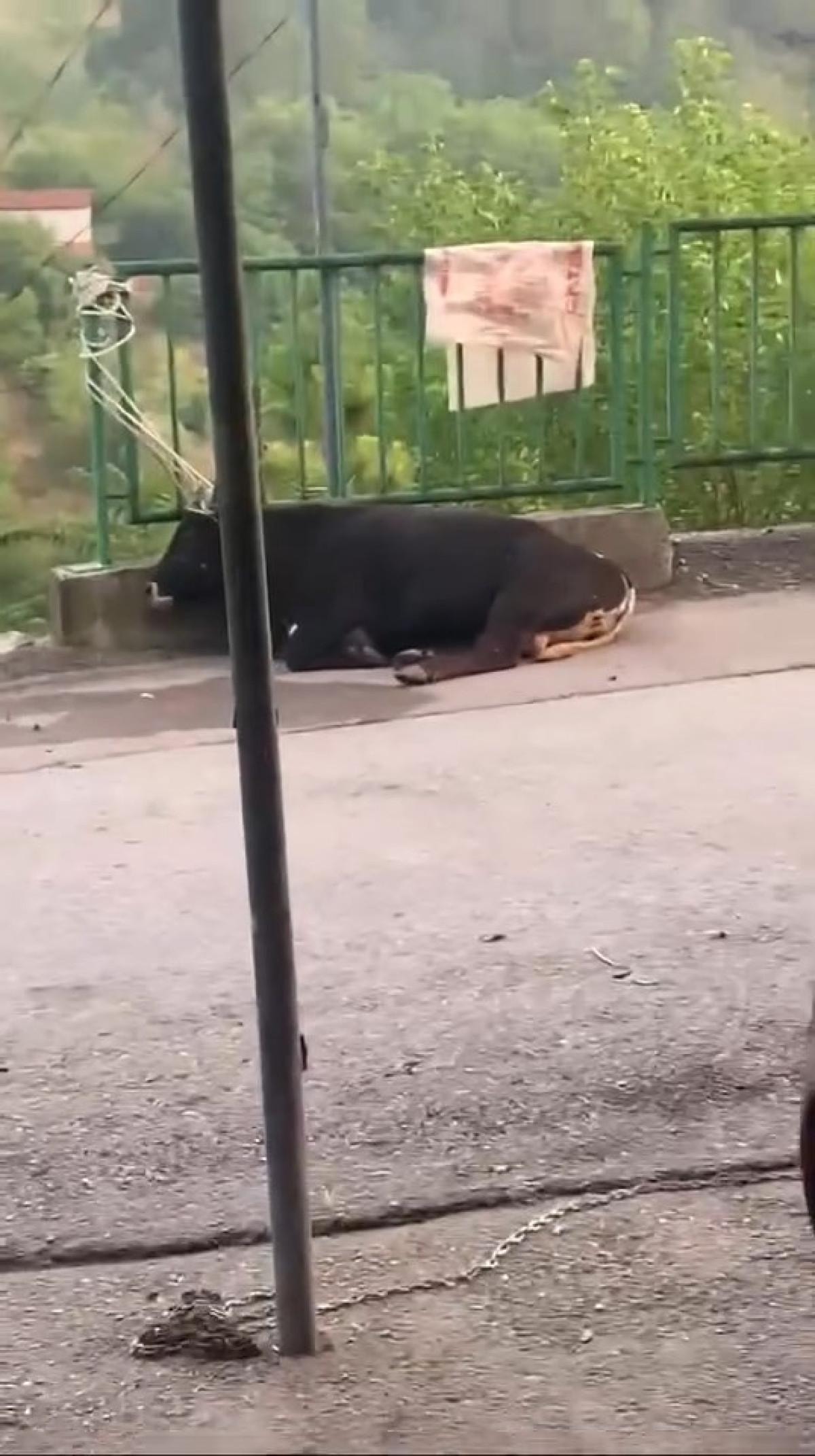 Bir süre sonra boğa, sac kaplama olan çatının çökmesi sonucu yaklaşık 3 metre yükseklikten park halindeki 41 BD 203 plakalı otomobilin üzerine düştü.
