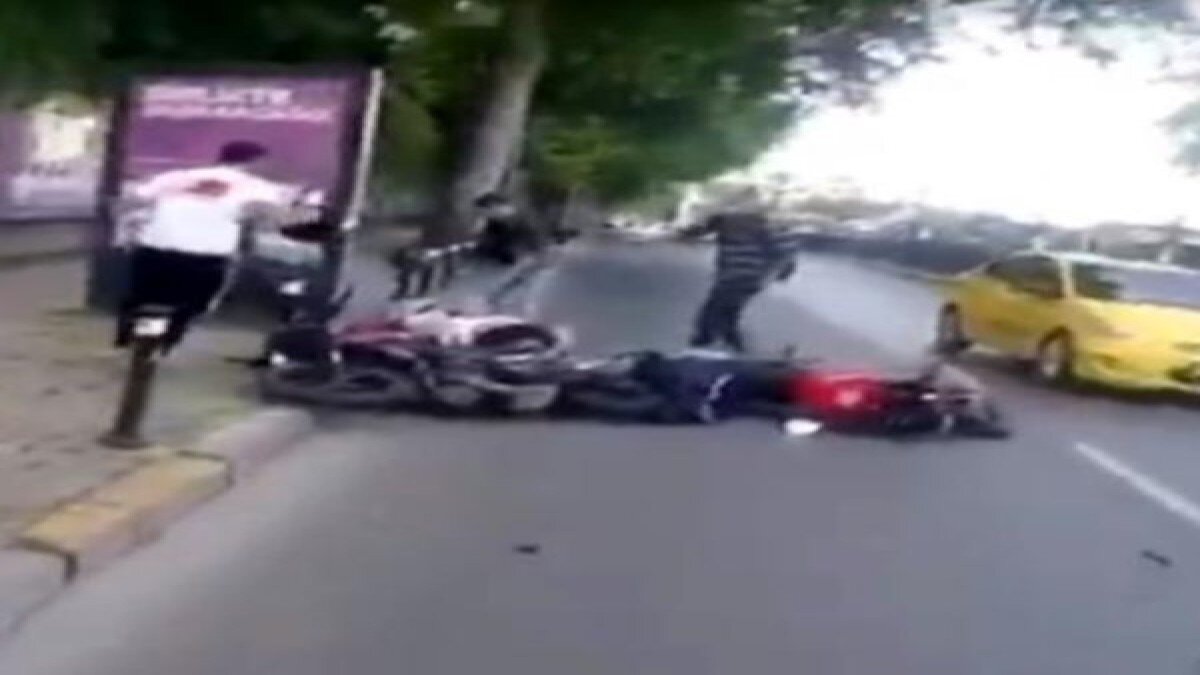 İki motosiklet yola savrulurken, üzerinde bulunan 4 kişi de yere düştü. Kazada 4 kişi hafif şekilde yaralanırken, kaza anı bir başka motosiklet sürücüsünün kask kamerası tarafından kaydedildi.