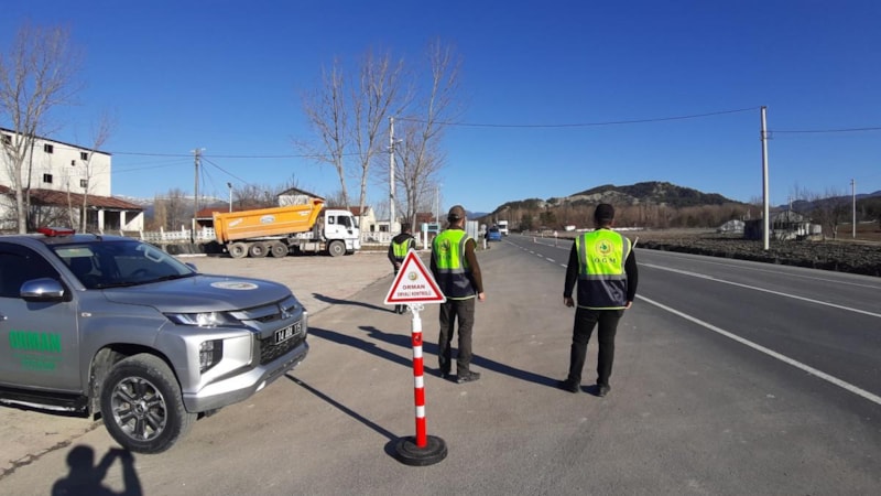 Orman ve köy yollarından ana arterlere bağlanan noktalarda yapılan uygulamada, orman emvali taşıyan araçların sevk pusulası ve nakliyeleri denetlendi.