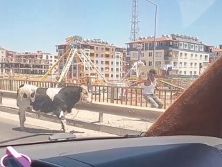 Kaçan kurbanlık dana, Antakya-İskenderun karayolu Adliye Saray mevkisini birbirine kattı.