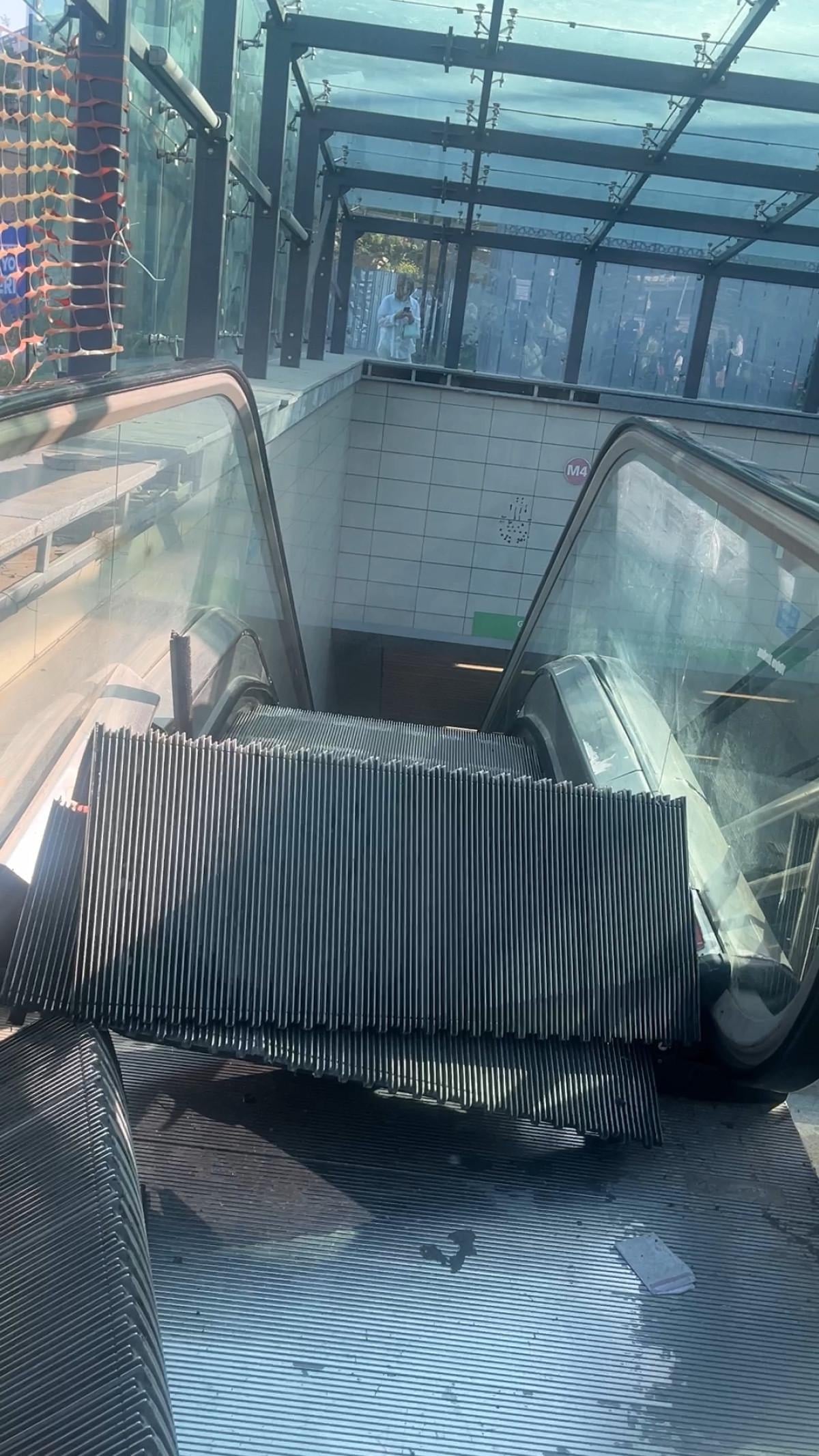 Arızanın giderildiği düşünülürken yürüyen merdiven aniden kırıldı.