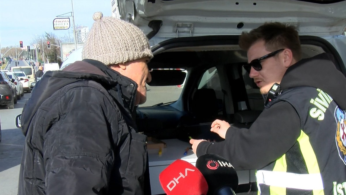 Emniyet kemeri takmadığı için ceza uygulanan taksici, "Ceza yazacaksanız bana bekleyeyim burada herkese yazın. Müşterimin acil işi vardı, ben de parktan çıktım, takamadım. Cezayı yapıştırdın, helal olsun belki de yıldız takarlar sana." ifadelerini kullandı.