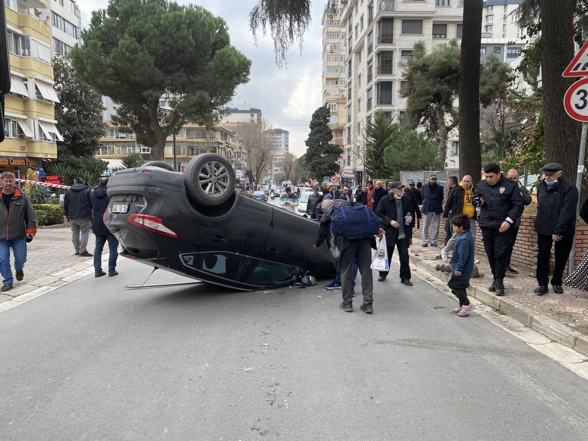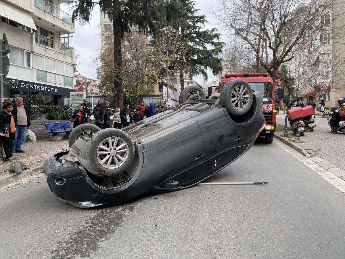 Kontrolden çıkan cip, önce kaldırımda yürümekte olan yabancı uyruklu kadına çarptı, ardından takla atarak ters döndü.