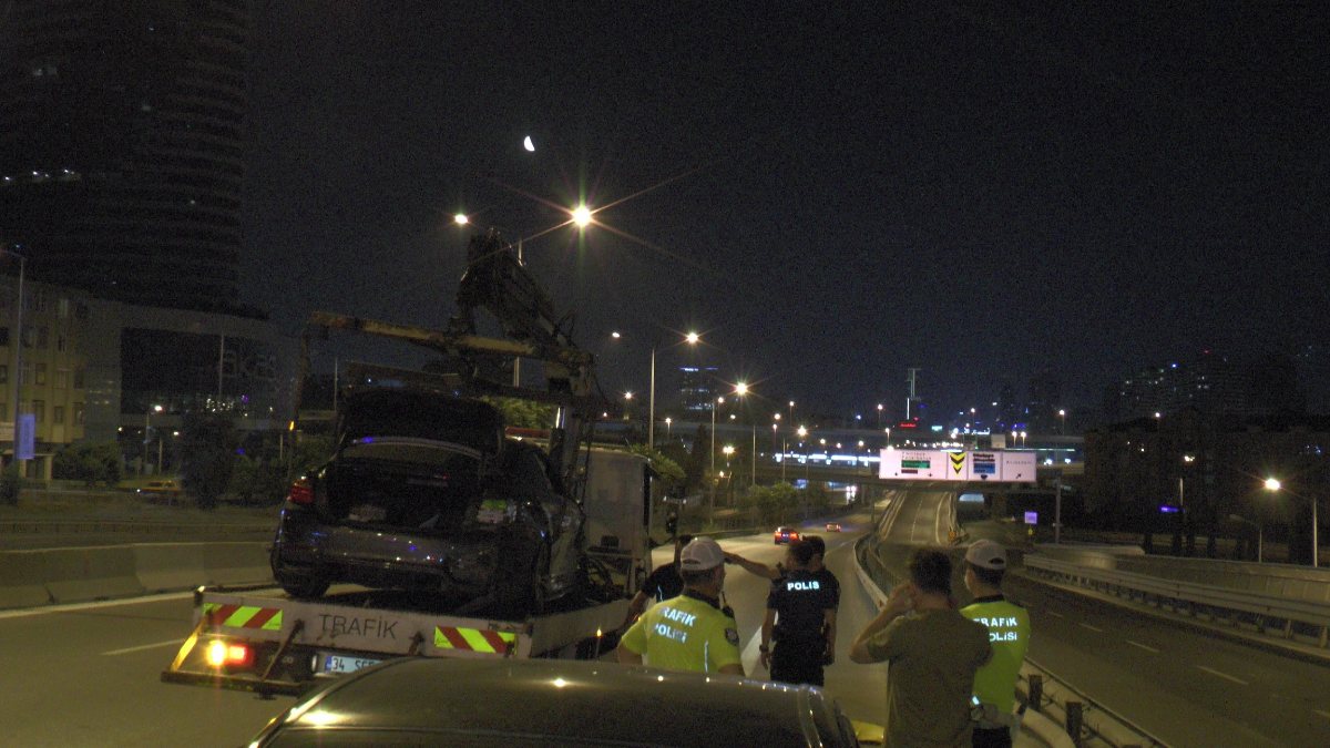 Kazaya neden olan otomobil sürücüsü, yaklaşık 100 metre ileride bariyerlere çarparak durdu.