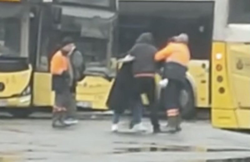 Kavgayı orada bulunan temizlik görevlileri ve durakta bulunan vatandaşlar güçlükle ayırdı.