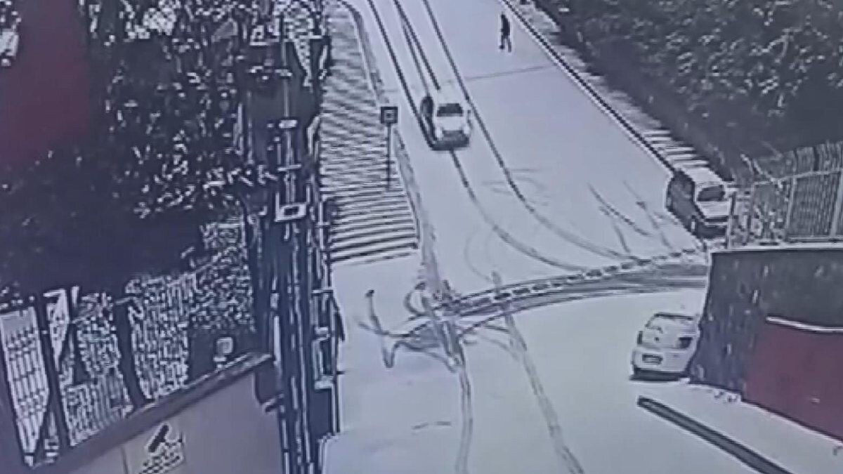 Kar yağışıyla buz tutan bir rampadan kayarak sürücüsünün kontrolünü kaybettiği otomobilin kaza anları, güvenlik kamerasına yansıdı.