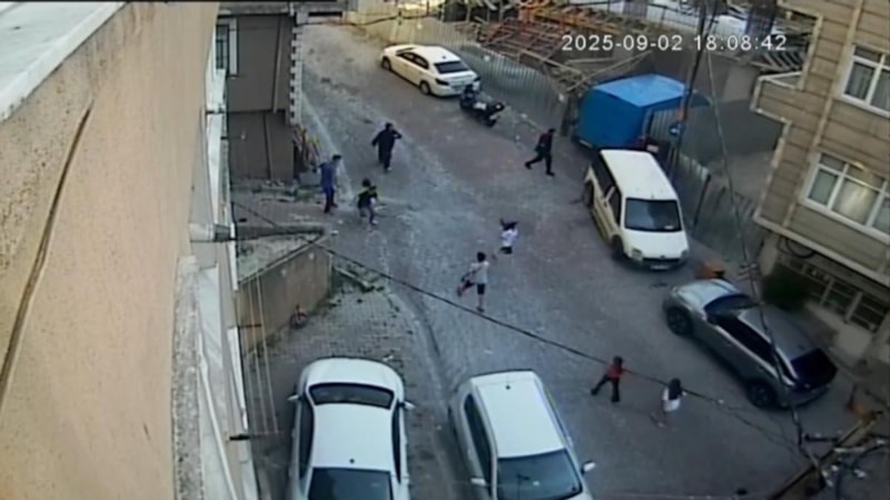 Kağıthane’de kargo minibüsü, kontrolden çıkarak park halindeki araca çarptı ve inşaat alanına girdi, sokakta oynayan çocuklar saniyelerle kurtuldu.