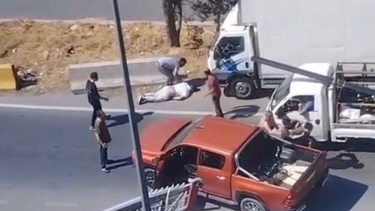 Arbede sırasında şahıs, bu sefer diğer sürücüyü yumruğuyla yere devirdi.