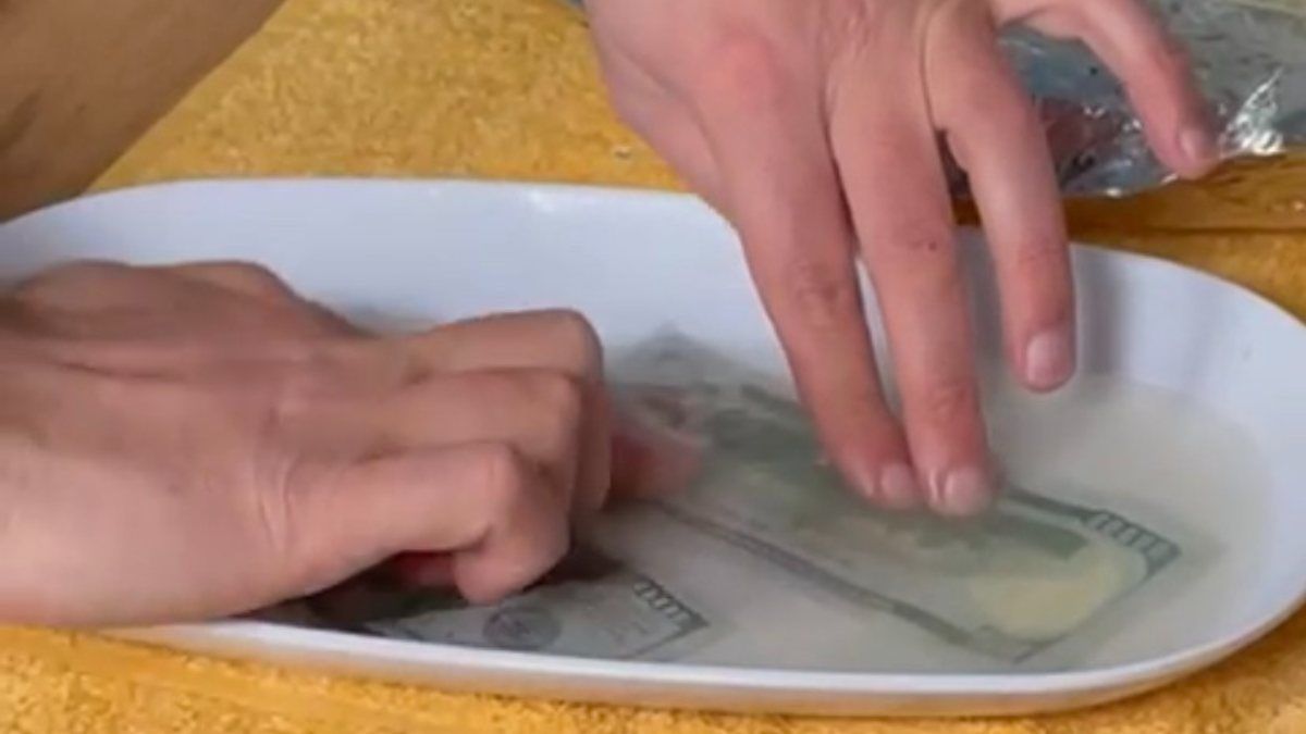 Özel kağıtları solüsyonla dövize çevirdiği an kamerada