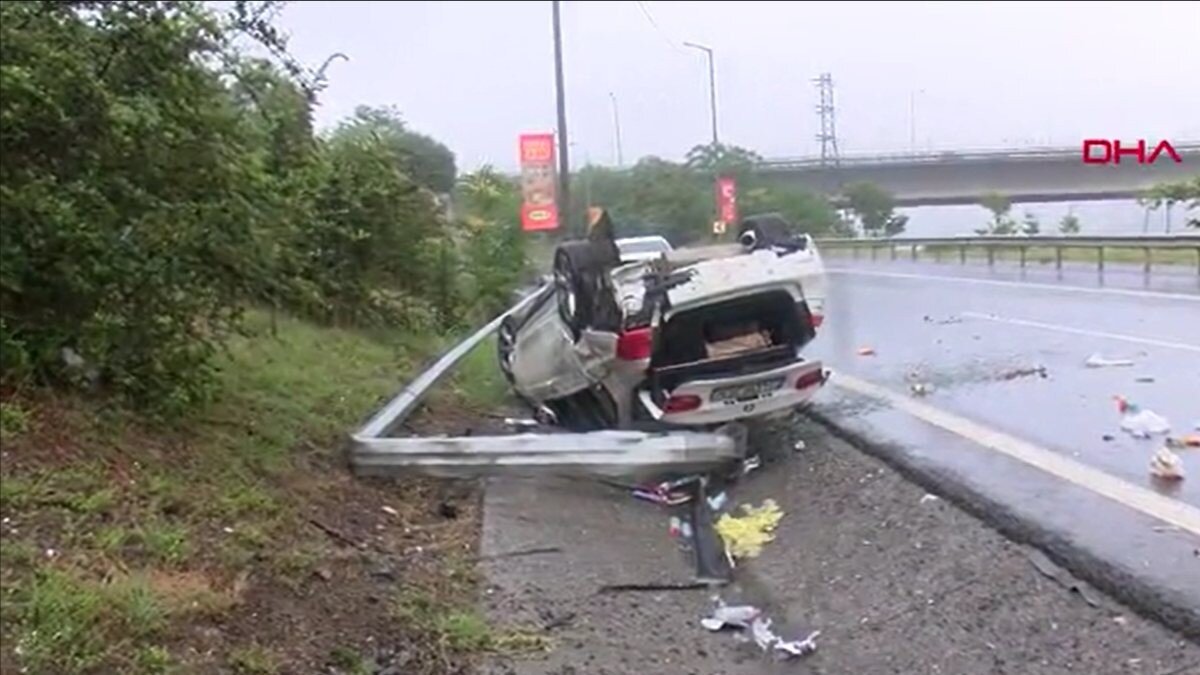 Kağıthane’de O-2 otoyolu üzerinde Hasdal yönüne ilerleyen sürücü, yağmur nedeni ile kayganlaşan yolda kontrolünü kaybetti.