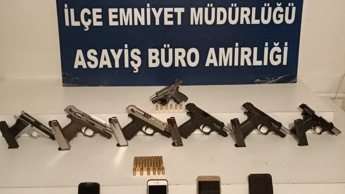 Baskında yapılan aramalarda 7 adet ruhsatsız tabanca, 7 adet şarjör, 107 adet fişek ve silah ticaretinde kullanıldığı değerlendirilen 4 adet cep telefonu ele geçirildi.