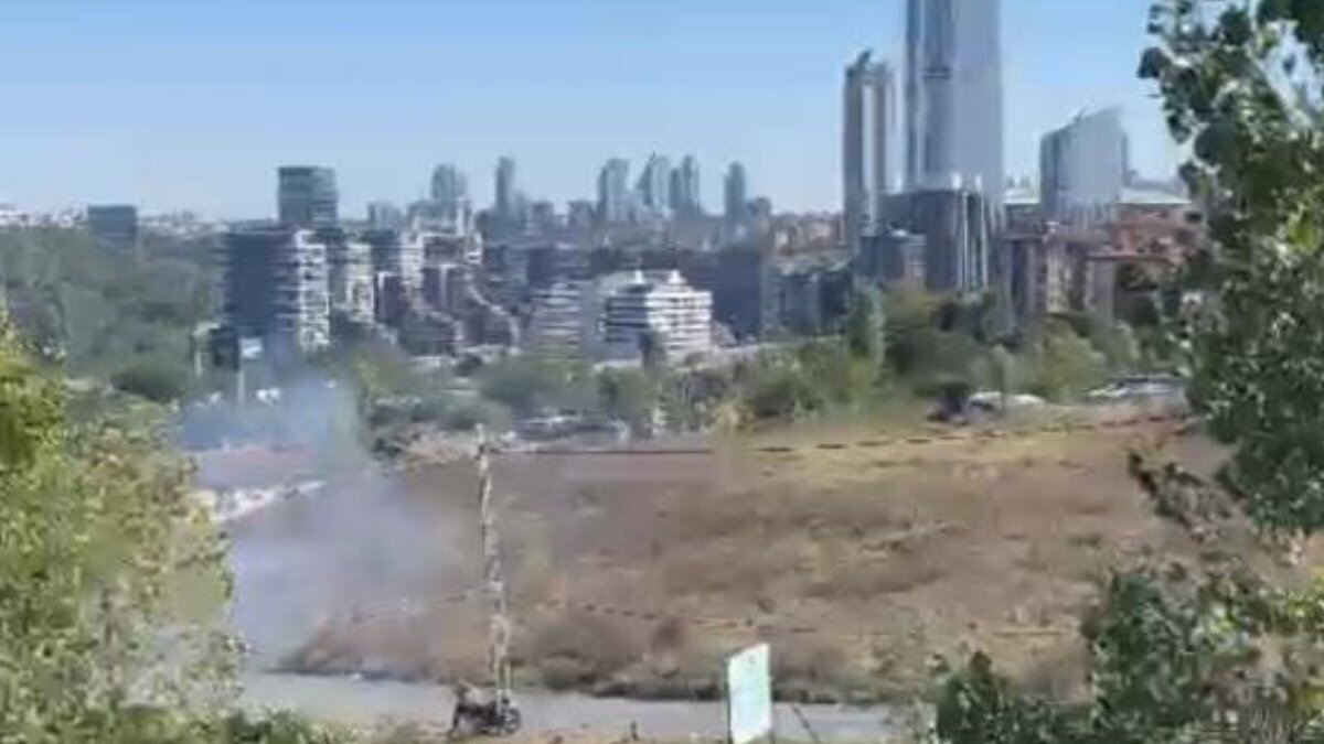 Kundaklanan yeşil alan cep telefonu kamerasına yansırken, polis ekipleri olayla ilgili inceleme başlattı.
