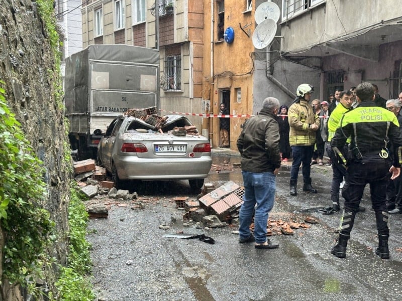 İstanbul Kağıthane’de bir evin bahçe duvarının bir kısmının yıkılması sonucu kopan parçalar, park halindeki aracın üzerine düşerek maddi hasara neden oldu.