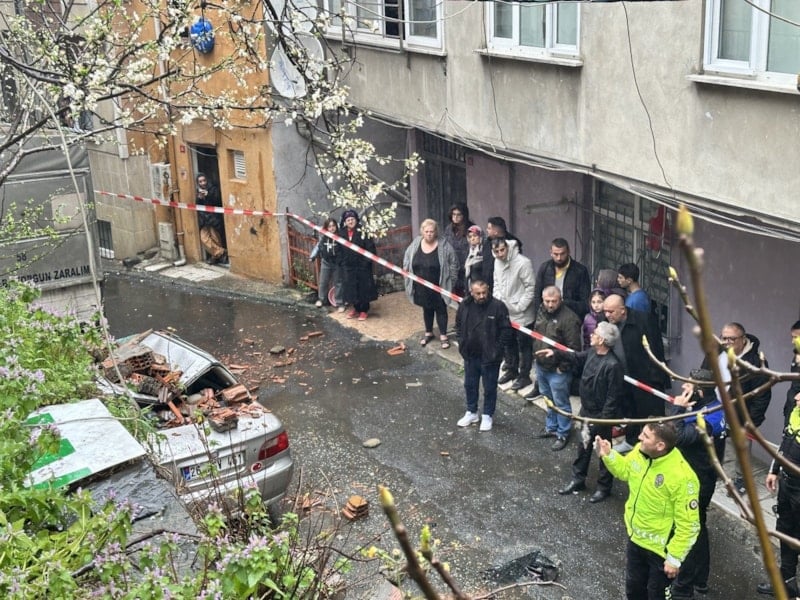 Durumun bildirilmesi üzerine polis, itfaiye ve zabıta ekipleri olay yerine intikal etti. Çevrede güvenlik önlemleri alınırken, düşen moloz parçaları kaldırıldı ve yol tekrar güvenli hâle getirildi.