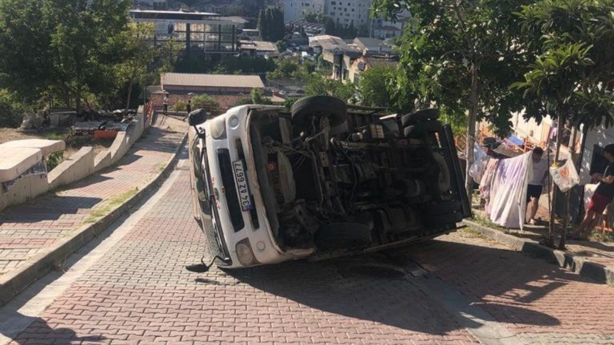 Kağıthane’de, yokuşta kayan kamyonet devrildi VİDEO