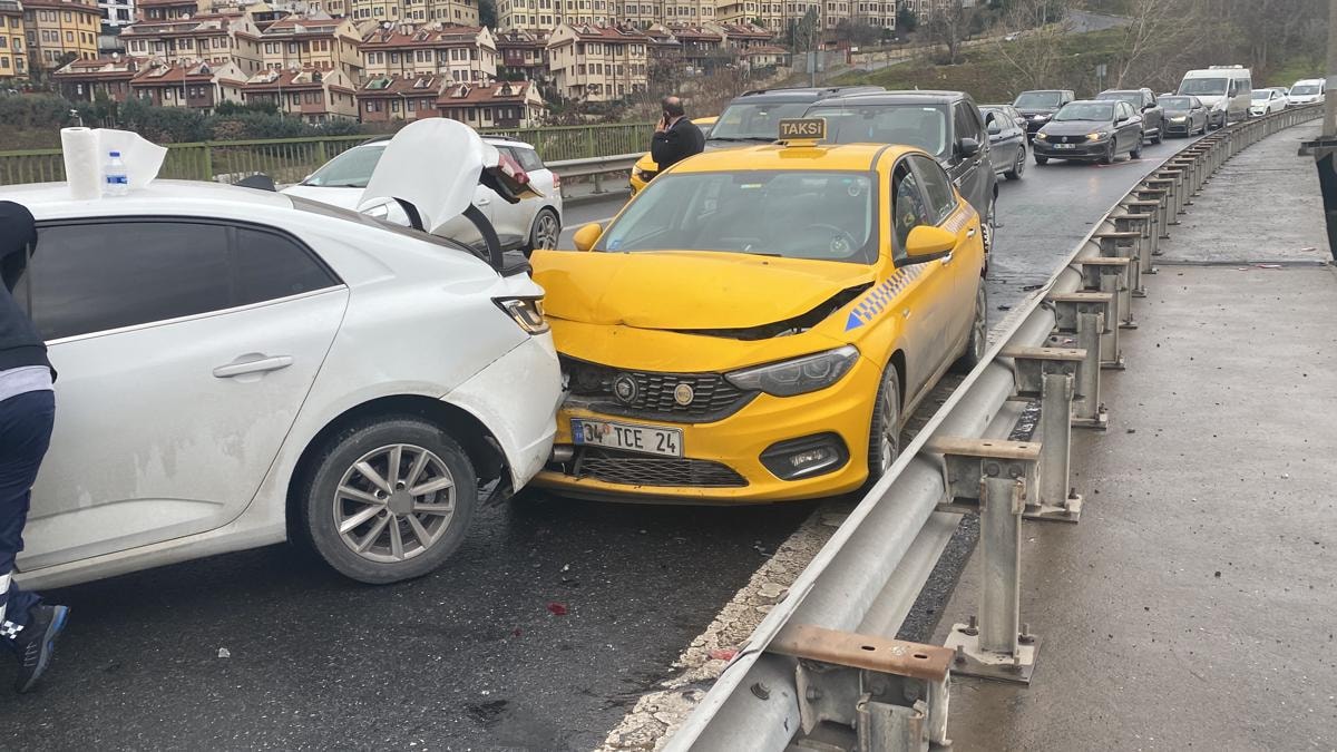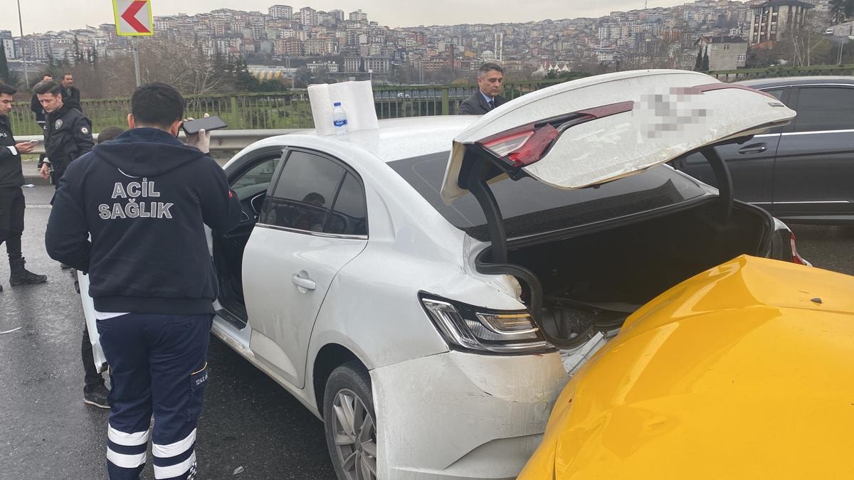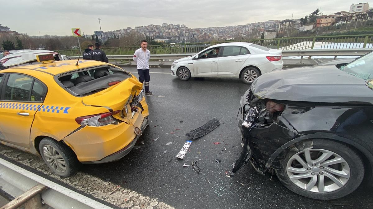 İstanbul’da, Kağıthane Haliç sahil yolu kavşağında seyir halinde olan 4 araç, yokuştan inerken yanan kırmızı ışıkta durdu.