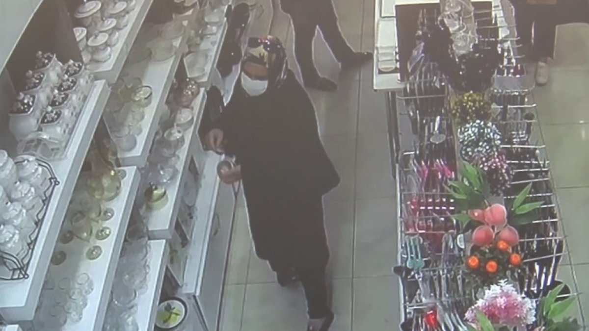 Bir müddet kaseleri inceleyen kadın, elindeki tanesi 10 liradan satılan 3 adet kaseyi çantasına koydu. Kaseleri çalan kadın, alışveriş yapmadan iş yerinden ayrıldı.