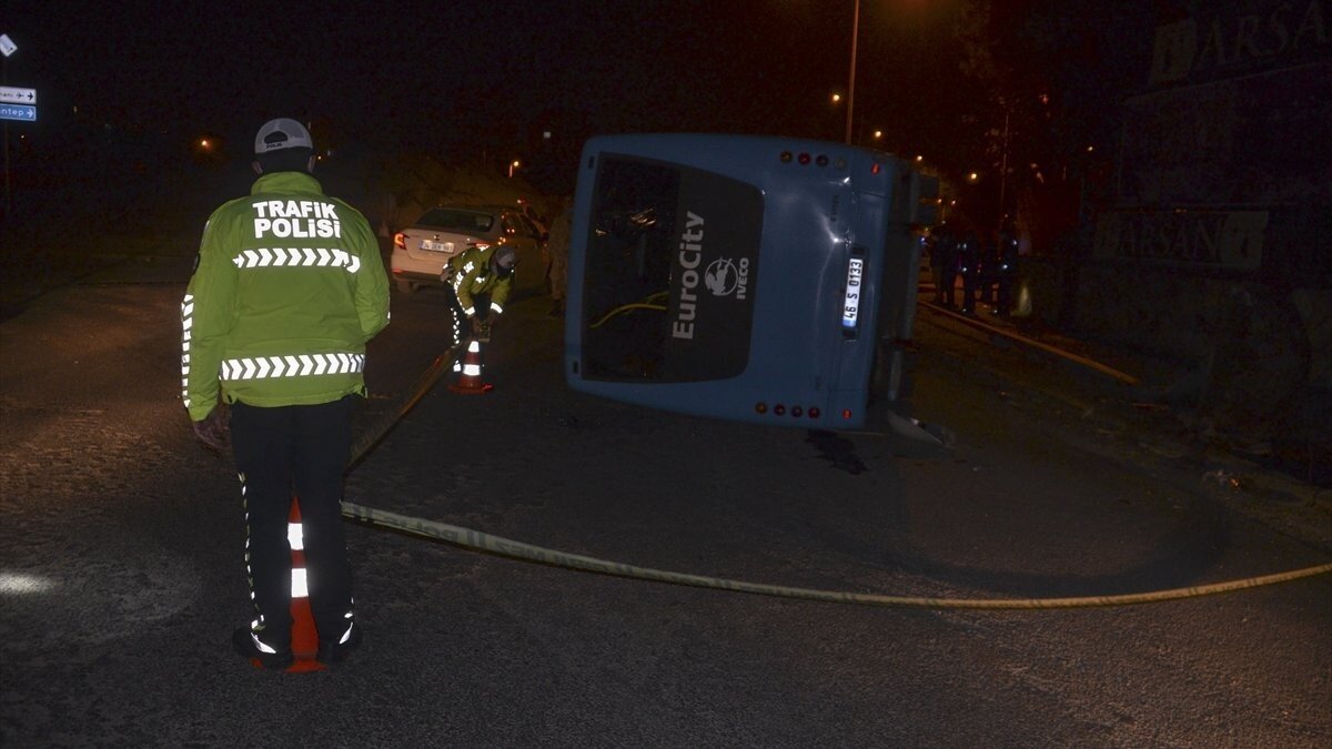 Jandarmanın "dur" ihtarına uymayarak kaçan şüphelilerin Gaziantep yolu Arsan kavşağında polis ekipleriyle karşılaştıkları esnada midibüs devrildi.