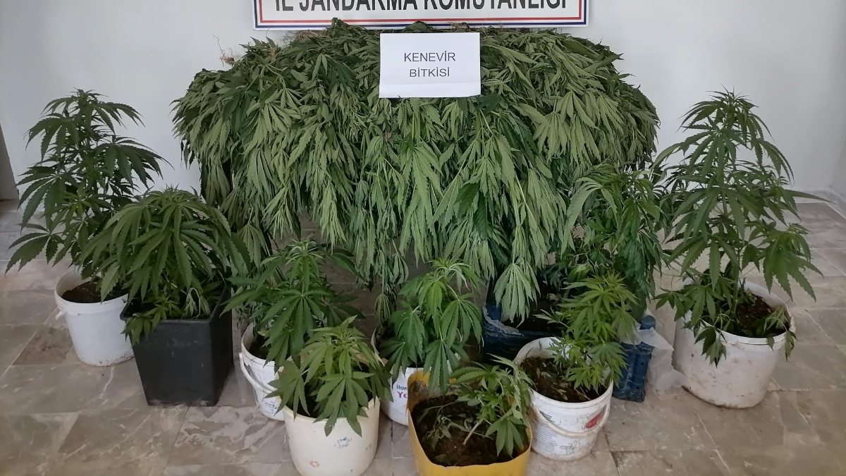H.Ö. (68) ve Ö.Ç. (36) isimli şahısların evlerinin bahçesinde 422 kök Hint keneviri bulundu.