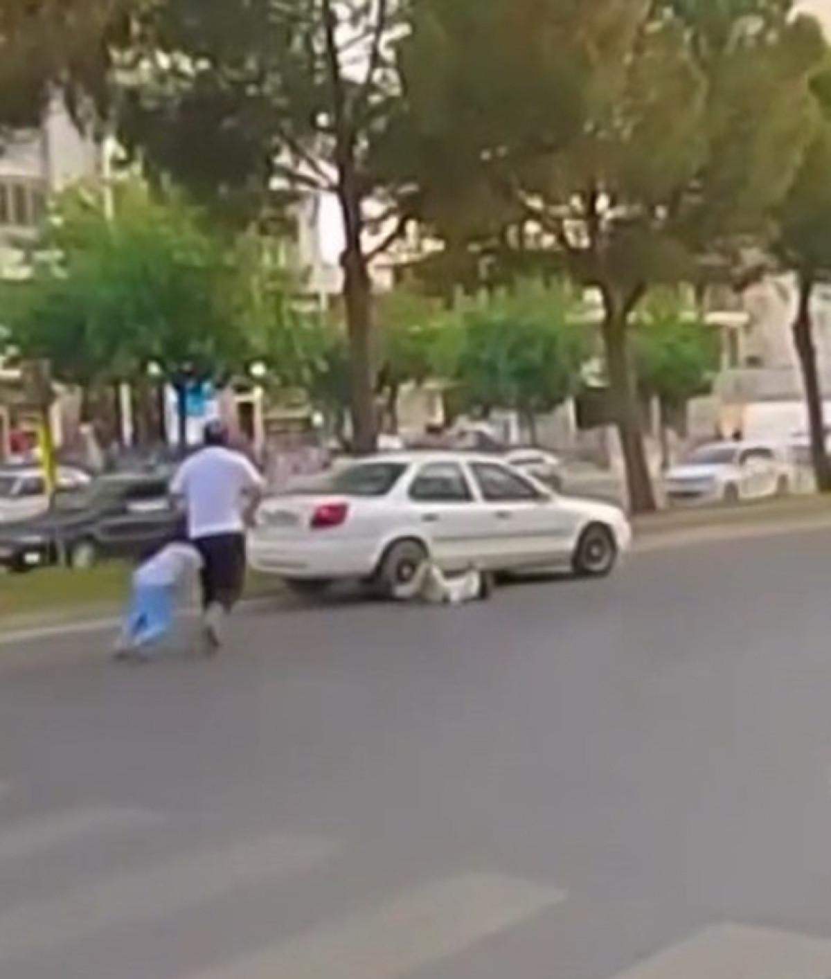 Görüntülerde baba ve kızlarının yolun karşısına geçmeye çalışırken otomobilin çarptığı görüldü.