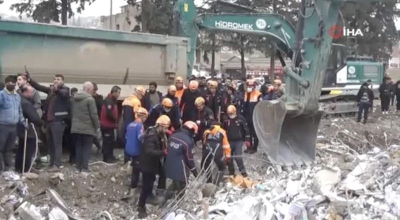 Kahramanmaraş merkezli meydana gelen 7,7 ve 7,6 büyüklüğündeki depremlerin ardından sahada enkaz çalışmaları devam ediyor.