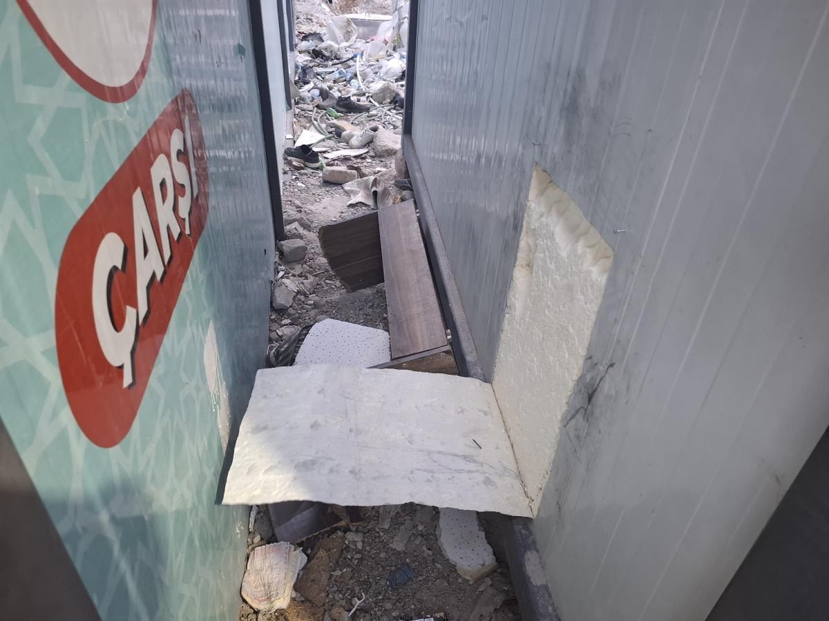 Depremde iş yerlerinin yıkıldığını, bu nedenle konteynerde hizmet verdiklerini belirten esnaftan Kadir Gülcü, "Depremde dükkanımız yıkılmıştı. Burada konteynerde iş yapmaya çalışıyoruz ama vicdansızlar izin vermiyor. Depremden sonraki bütün kazancımız 10 dakika içerisinde gitti." dedi.