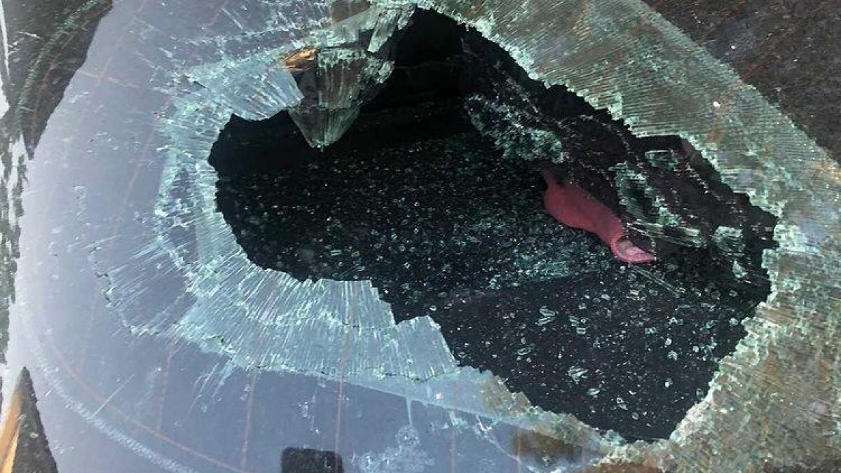 Buradaki görevlilere de hakaret eden İ.D., daha sonra kaldırım taşıyla binanın camlarını kırdı.