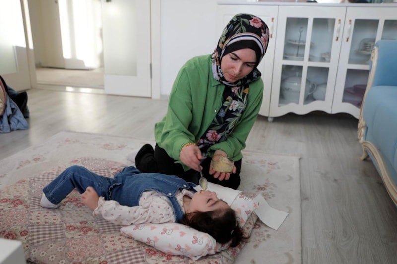 Okula gitmesi gerekirken ben kızımı fizik tedavi merkezlerine hastanelere götürüyorum, evde kendim besliyorum.