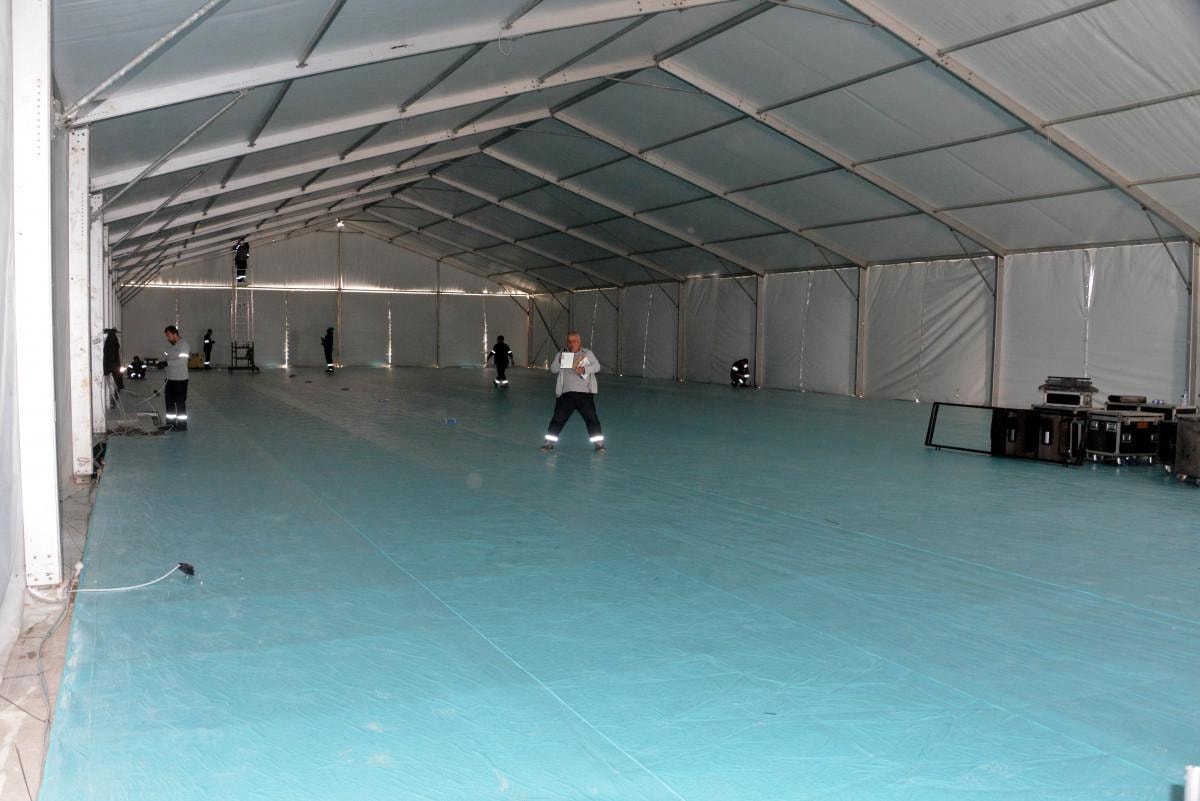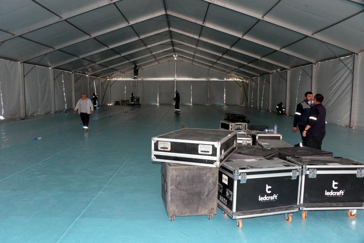 Çalışmalar kapsamında caminin bahçesine çadırlardan mescit, yemekhane ve etkinlik alanları oluşturuldu.