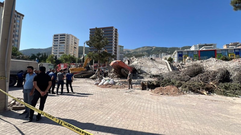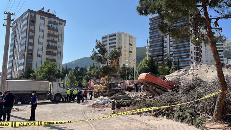 Onikişubat ilçesinde, 6 Şubat depremlerinde ağır hasar alan bir binanın kontrollü yıkımı kontrolden çıktı, iş makinesi binanın enkazı altında kaldı. İş makinesinin içinde bulunan operatör de moloz yığını altında mahsur kaldı.