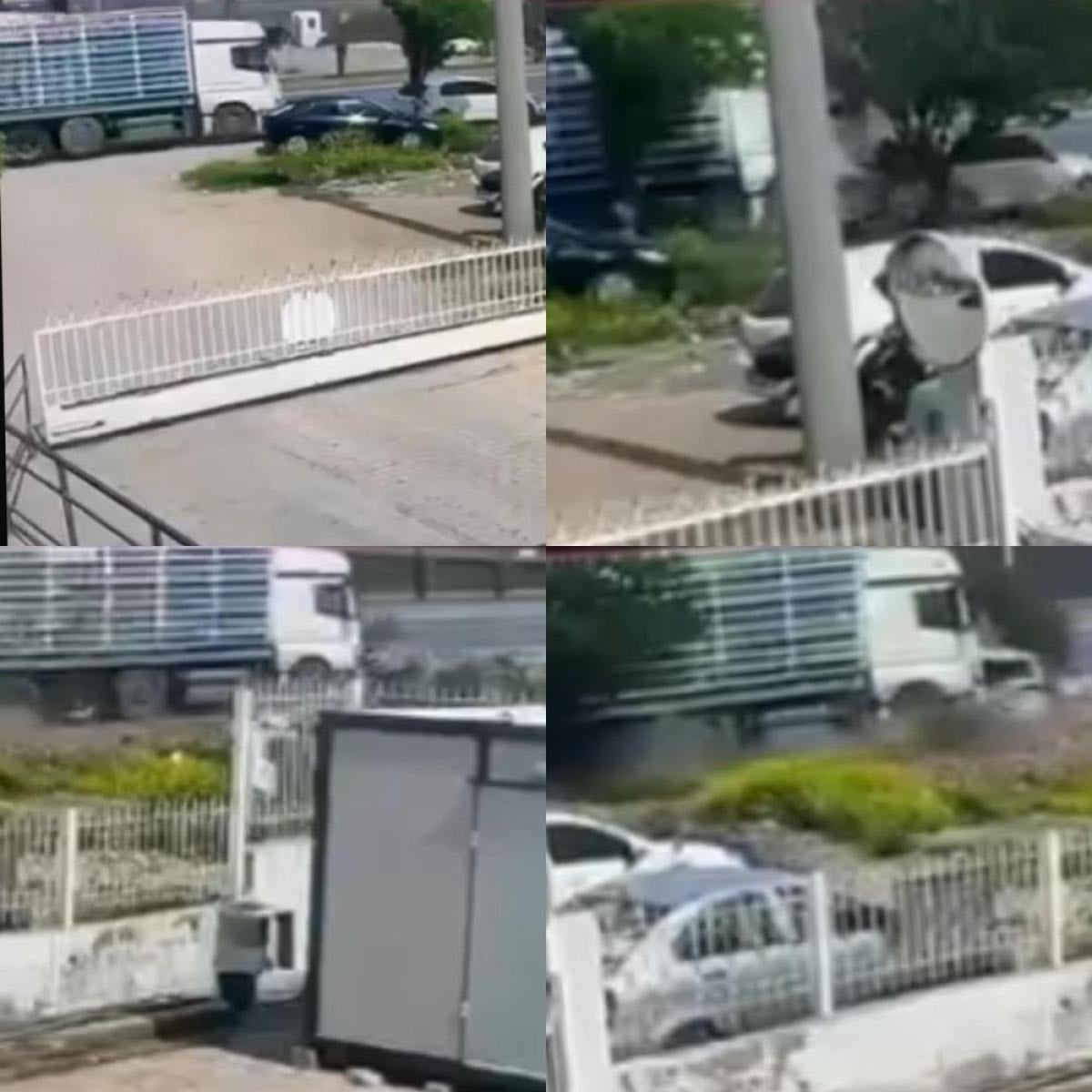 Görüntülerde tırın büyük bir hızla kontrolden çıktığı, ardından da otomobile çarparak sürüklemesiyle birlikte devrildiği anlar yer aldı.