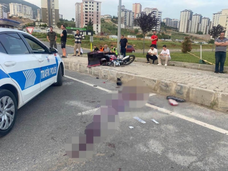 Motosiklet sürücüsünün cansız bedeni morga kaldırılırken kaza anı ise bir iş yerinin güvenlik kamerasına yansıdı.