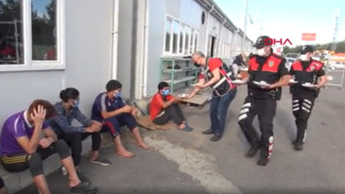 İşlemlerinin tamamlanmasını bekleyen göçmenlere, Göçmen Kaçakçılığıyla Mücadele ve Hudut Kapıları Şube Müdürlüğü ile Asayiş Şube Müdürlüğü ekipleri bayram ziyareti düzenleyerek dondurma ve tatlı ikram etti.
