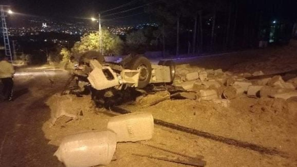 Kahramanmaraş’ın Dulkadiroğlu ilçesinden yola çıkan saman yüklü tır, Yedikuyular Kayak Merkezi yolunda kaza yaptı.