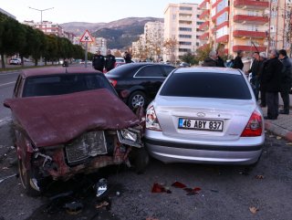 Araç önce yol kenarında park halindeki 01 ALG 27 plakalı otomobile, daha sonra cadde üzerinde seyir halinde olan 46 LT 990 plakalı otomobile çarptı. Hızını alamayan otomobil, park halindeki 46 ABY 837 plakalı otomobile çarparak durdu.