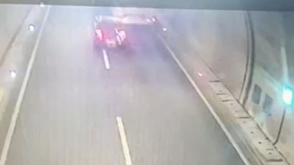 Meydana gelen trafik kazası tünel içerisinde bulunan güvenlik kameralarına yansıdı.