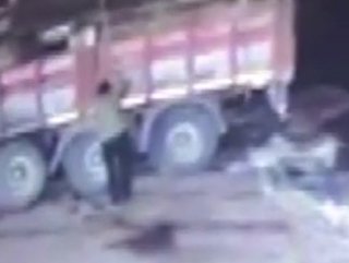 Kamyondaki tomruklar üzerine devrildi VİDEO