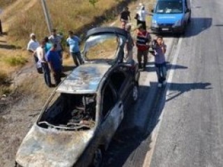 Sürücü Baydar'ın yolun kenarına çektiği araç, kısa sürede alevler içinde kaldı.