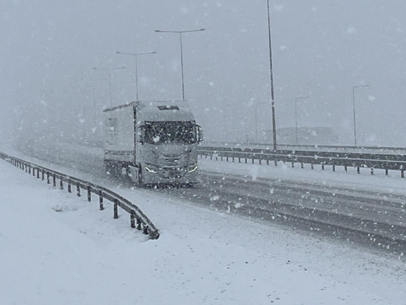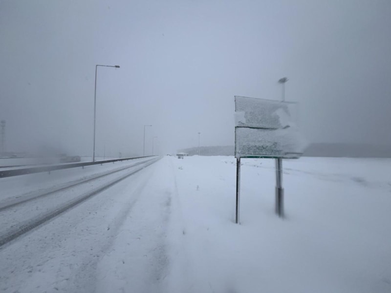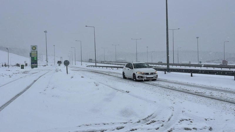 Öte yandan, otoyolun kenarındaki yeşil alanlar kar yağışıyla birlikte beyaz bir örtüye bürünerek kış manzarası sundu.