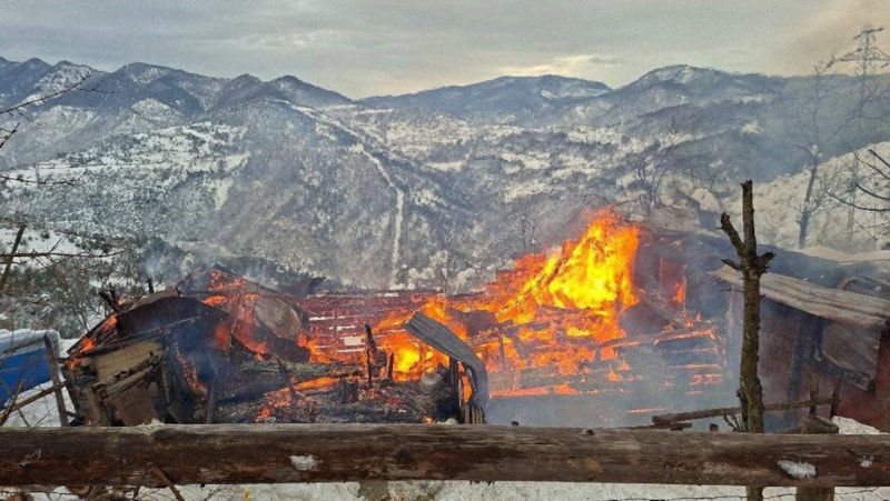 Yangın nedeniyle ev tamamen yanarak kullanılamaz hale geldi.