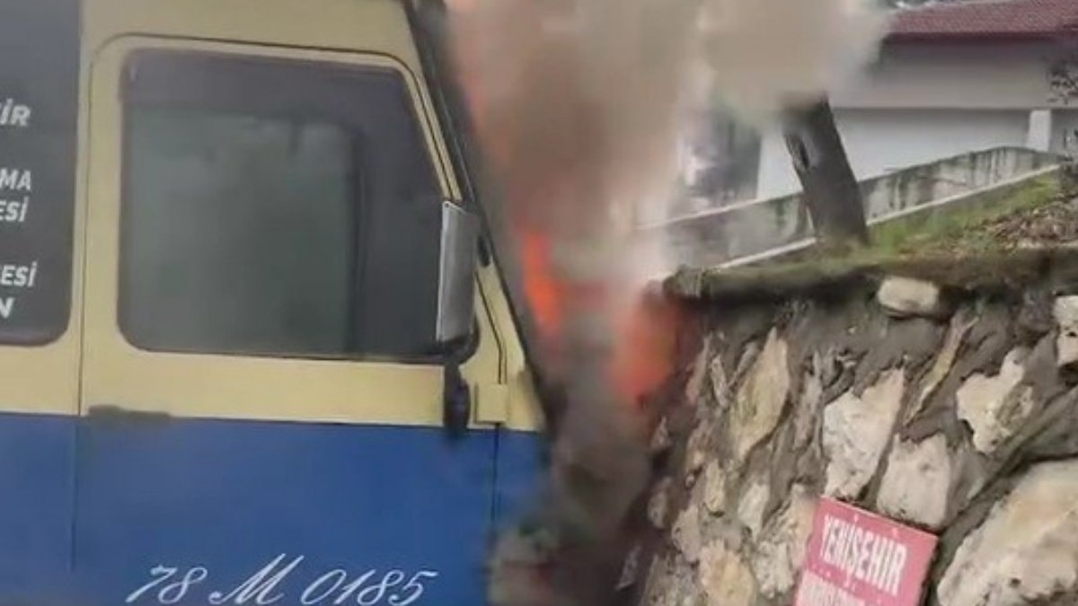 Karabük merkez Yenişehir Mahallesi'nde park halindeki yolcu minibüsünün motor kısmında henüz bilinmeyen bir nedenle yangın çıktı.