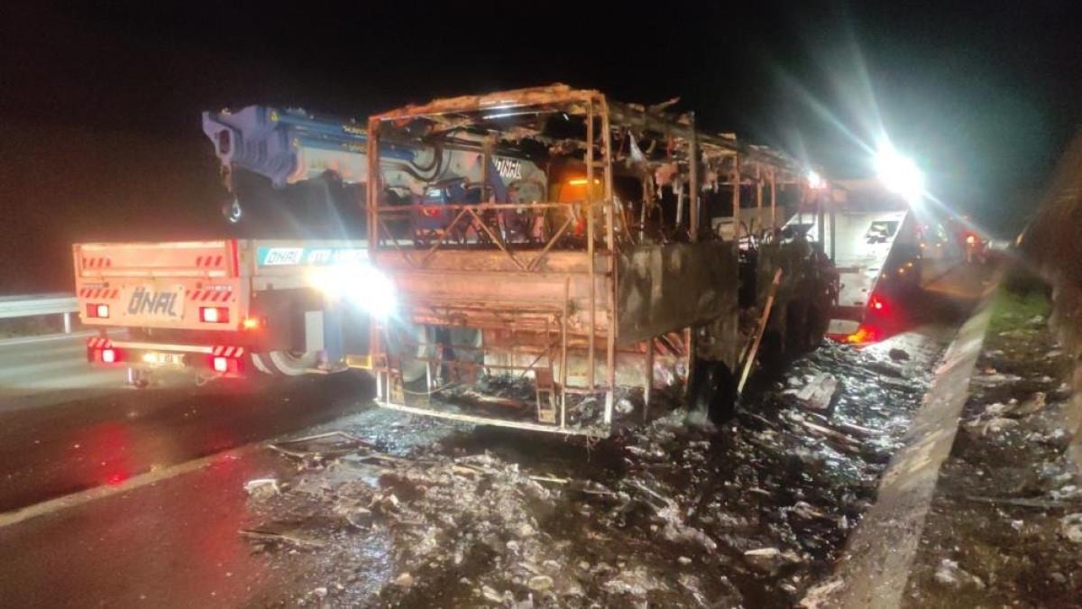 Yaşanan olayda kimse yara almazken alevlere teslim olan otobüs, vinç yardımıyla bulunduğu yerden kaldırıldı.