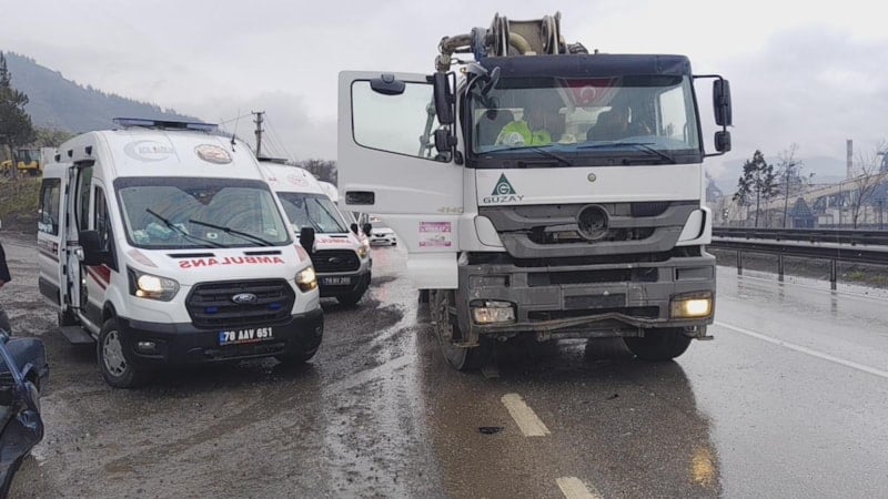Karabük'te beton mikseri ile otomobilin çarpışması sonucu 1'i çocuk olmak üzere 5 kişi yaralandı.