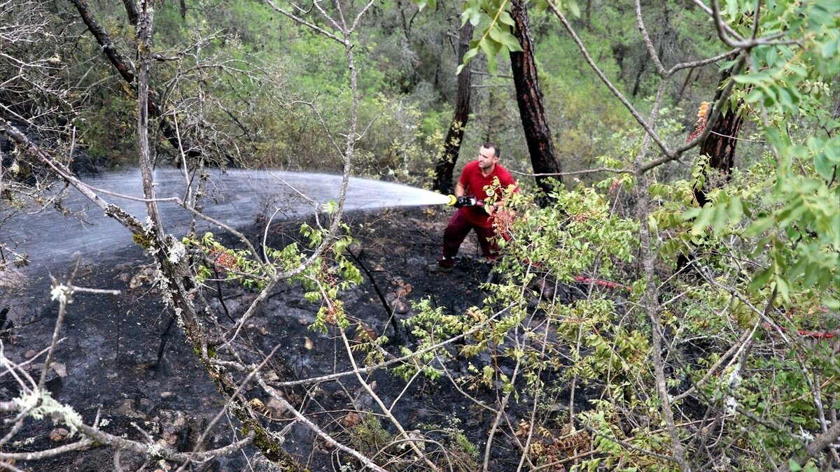 Yangın, 2 teknik personel, 6 yangın işçisi, bir arazöz, 2 su tankeri ve köylülerin de destek verdiği çalışma sonucu söndürüldü.