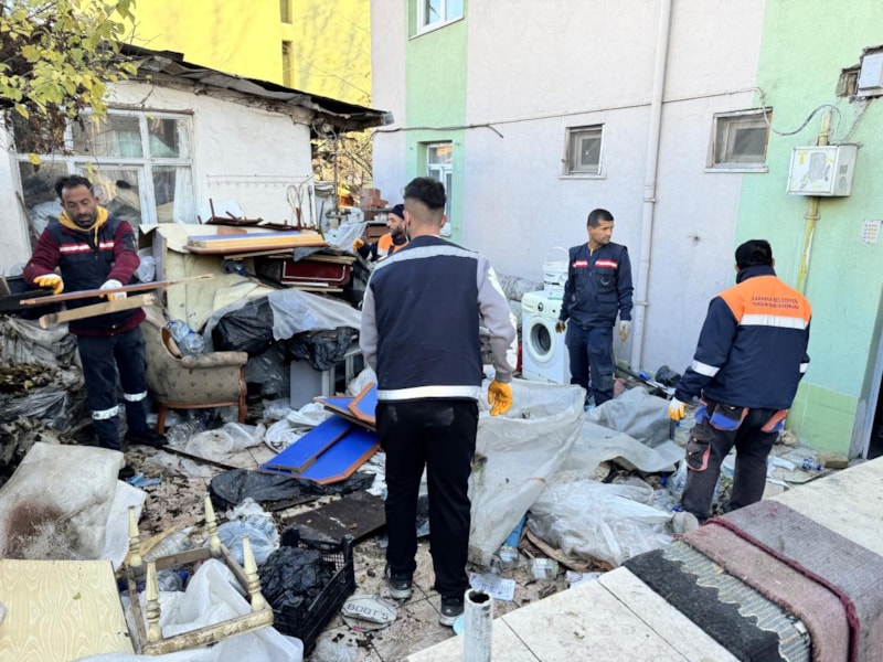 Karabük'te mahalle sakinlerinin ihbarı üzerine bir eve giden belediye ekipleri, ev ve bahçeden yaklaşık 10 kamyon çöp çıkardı.