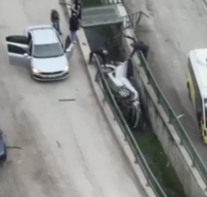 Kontrolden çıkan otomobil ise daha sonra kanala düşerek yan yattı.