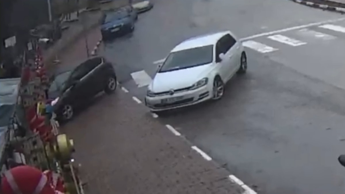 Maddi hasarla sonuçlanan kaza anı güvenlik kamerasına yansıdı.